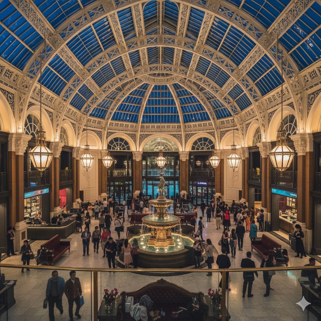 Crystal Palace: Begitu masuk, pengunjung disambut oleh atrium megah setinggi 33 meter yang terinspirasi oleh arsitektur besi dan kaca dari era Victoria. Di tengahnya berdiri replika Shaftesbury Memorial Fountain (Eros Fountain) yang menjadi titik temu ikonik bagi para wisatawan.